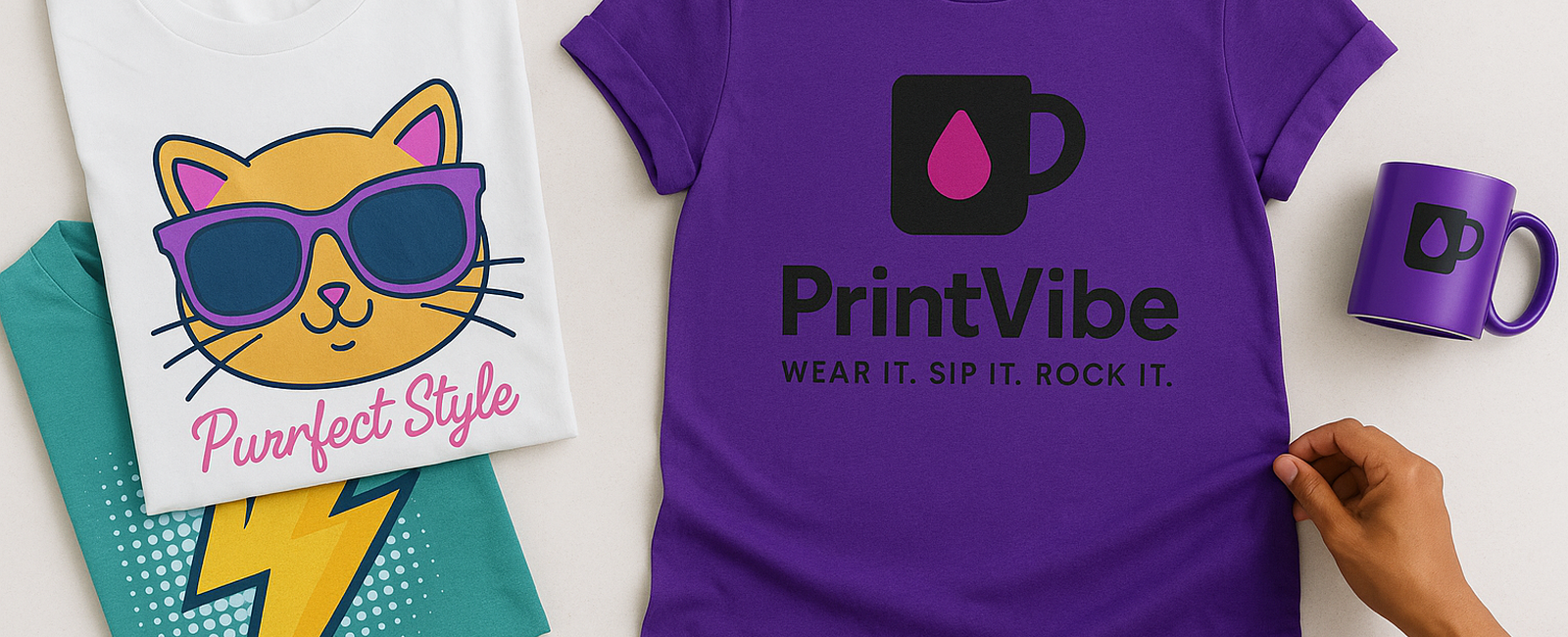 Looking for the perfect way to express yourself or create unforgettable gifts? At PrintVibe, we specialize in high-quality custom printing on t-shirts, mugs, cups, hats, and tumblers. Whether you're designing something unique for yourself, surprising someone special, or showcasing your brand, we make it easy and exciting to bring your ideas to life.